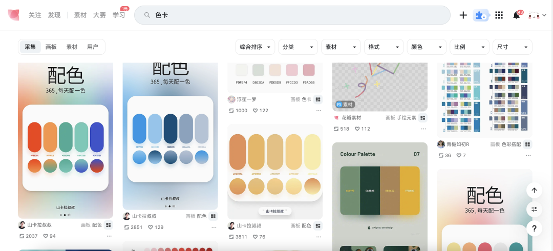 比如花瓣网,直接搜索关键词“色卡”即可。