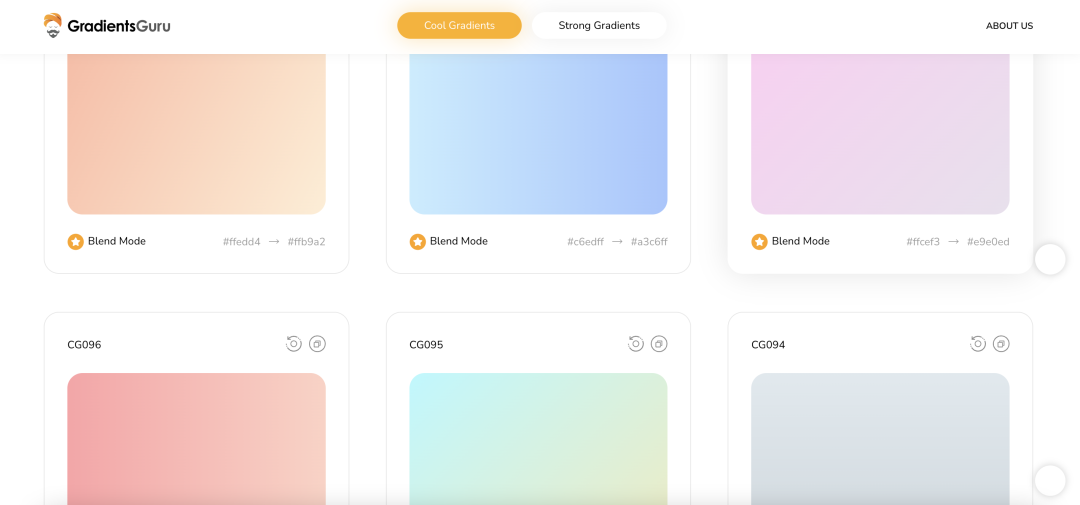 这个网站都是现成的渐变色,找到自己喜欢的渐变色,右上角还可以调整渐变角度。