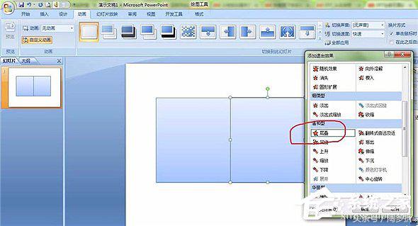 4、再选中左侧矩形,然后依次单击“添加效果→进入→其他效果→伸展”。