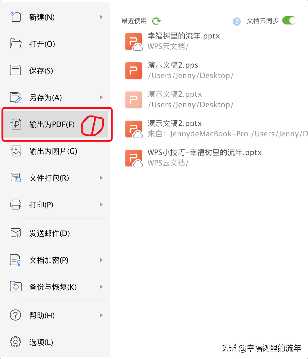 导出pdf--选择菜单【文件】-【导出为PDF】-选择合适位置存放文件即可