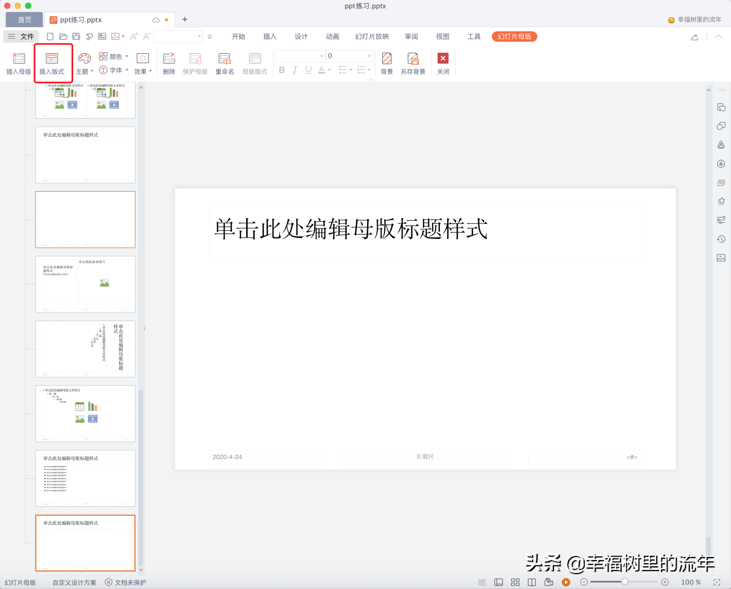 方法-【视图】-【幻灯片母版】-【插入版式】-看图
