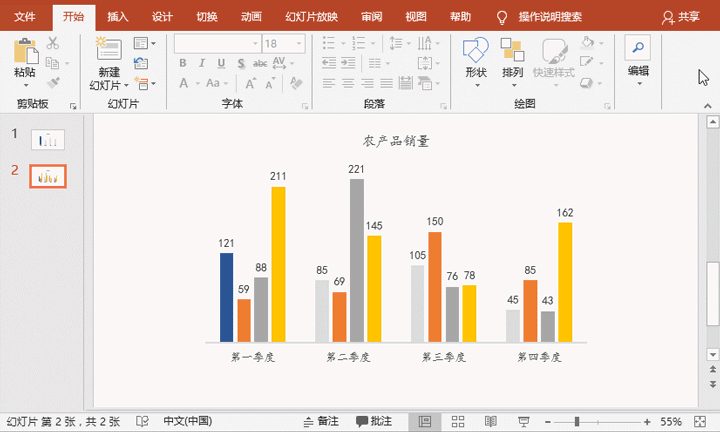 下面以最常见的柱形图为例说一说美化技巧。