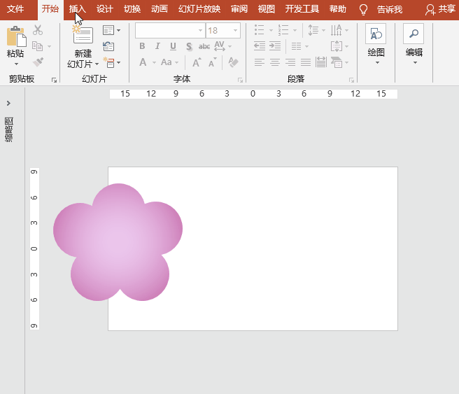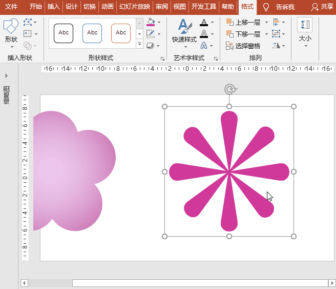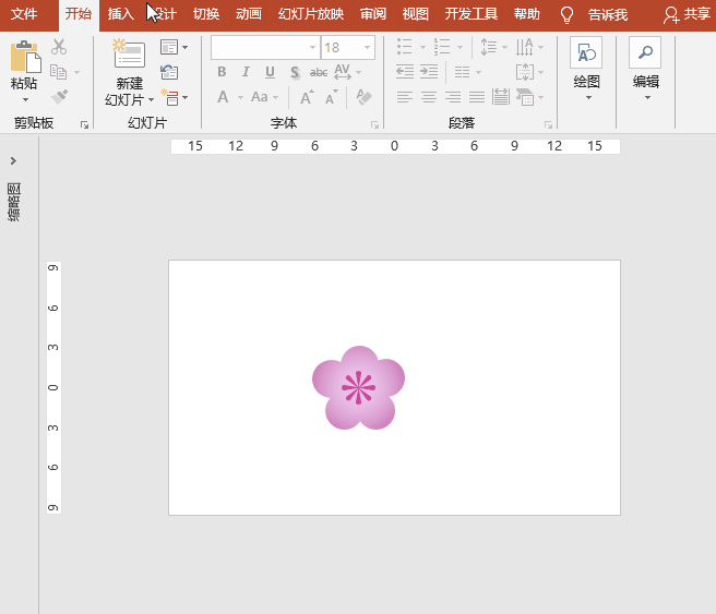 选择花蕊,按住Shift键等比例缩小,置于花瓣中心,选择花蕊和花瓣,右键“组合”,这样一朵桃花就做好了。