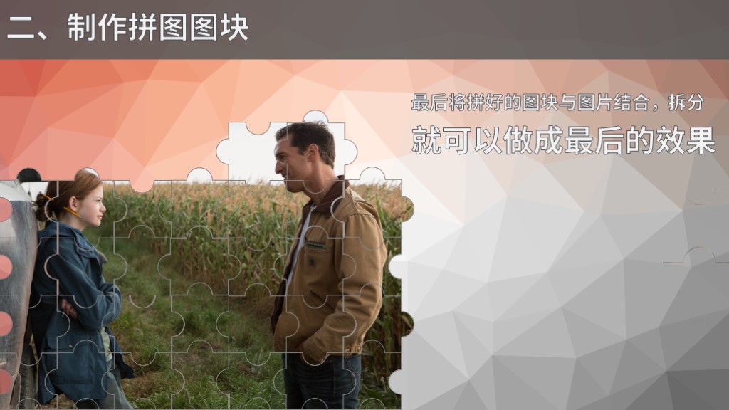 图片的内容就现实到了拼图块上面,然后略微调整每个拼图块的位置,最后就可以做成如下图的效果。