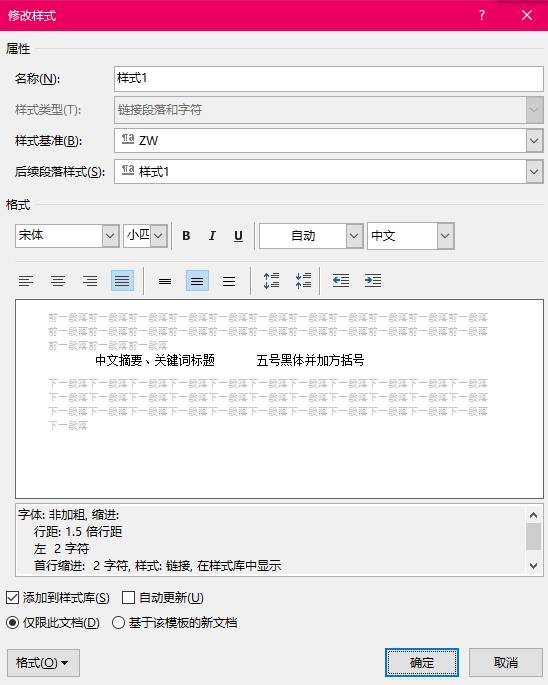 创建样式,给它起一个名字,可以叫论文正文,也可以用默认的样式1,之后按确认。