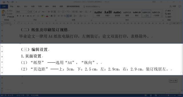 这是一份论文的页面尺寸要求,那我们如何进行设定呢?
