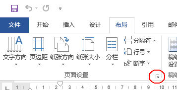 第一步,先点击菜单栏中的布局,然后会看到一个页面设置,点击其右下角的三角形。