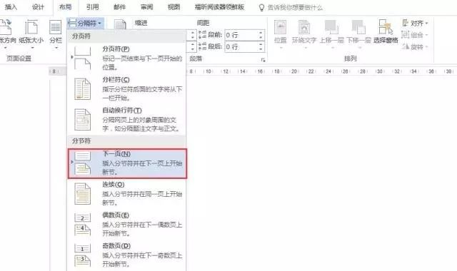 在需要设置为正式第一页的上一页文字末尾,点击菜单栏上的布局,选择分隔符,再选择分节符中的下一页。