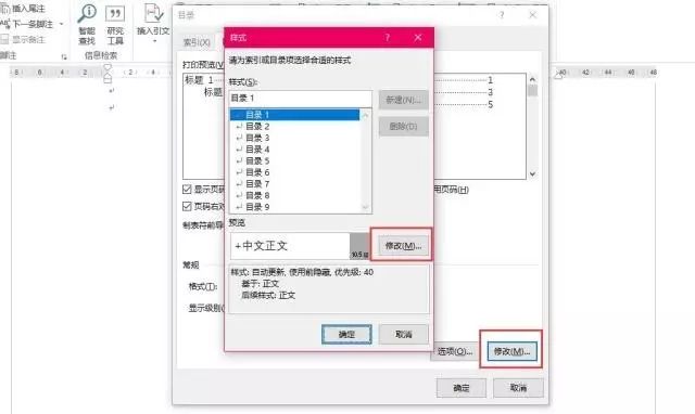 第四,如果目录对格式有要求,可以通过点击两个修改,来进入到字体格式的修改界面。