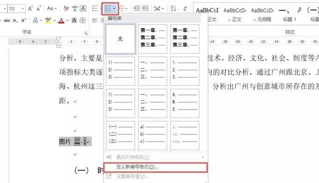 第一步,参照章标题的列表设置方法,自定义参考文献的编号。