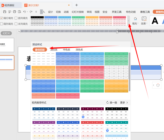 2.首先,我们如图所示插入表格:选择工具栏中“表格样式”: 点击“填充”旁三角符号,弹出样式菜单,可直接设置需要的样式: 还有一种方式,直接选中表格,点击右侧的表格样式图标,就可以进行设置啦:那么在PPT中表格如何设置默认样式的方法是不是很简单呢,你学会了吗?