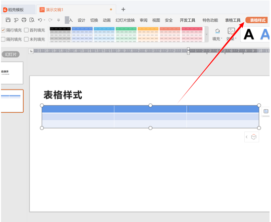 1.我们经常会对PPT内文档内插入的表格进行样式的修改,那么,表格的样式如何设置呢?下面就让小编告诉你PPT设置表格样式的方法,希望对大家有所帮助。