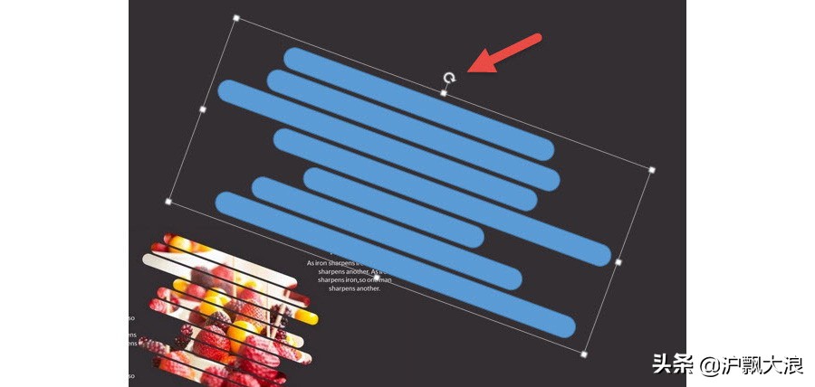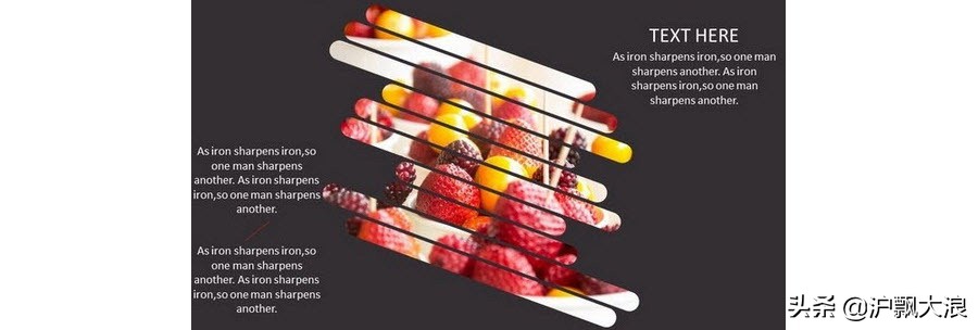 这种图片最容易让人产生的视觉效果是,图片是不是灰色图形的后方?灰色的图形是不是“扣”出了这些“长洞”呢?露出后面的草莓图片?如果按这个思路,直接用PPT2010就可以制作出来。