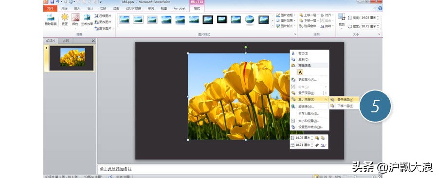 插入图片后,将照片置于底层。下图5处
