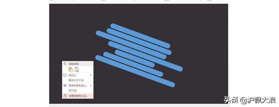 PPT2013版本制作方法如下:直接设置背景色为灰色。