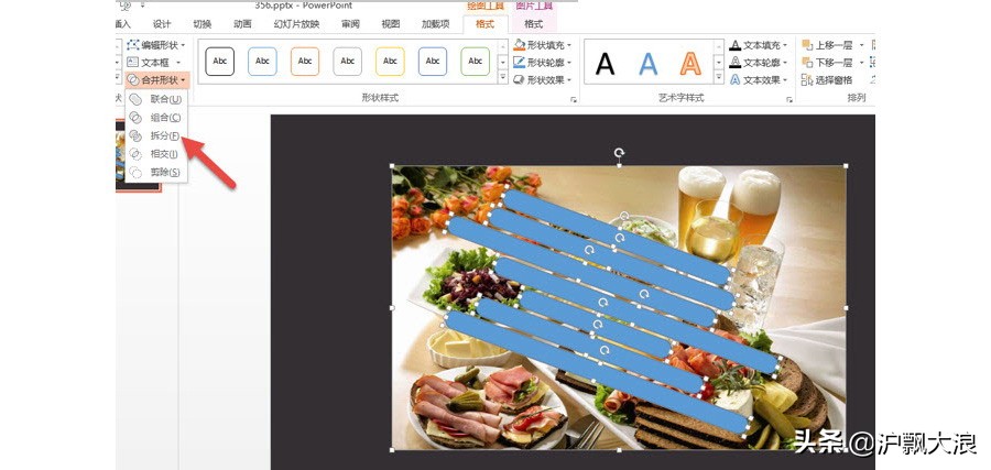 利用PPT2013独有的图形“拆分”功能,将图片拆分掉。
