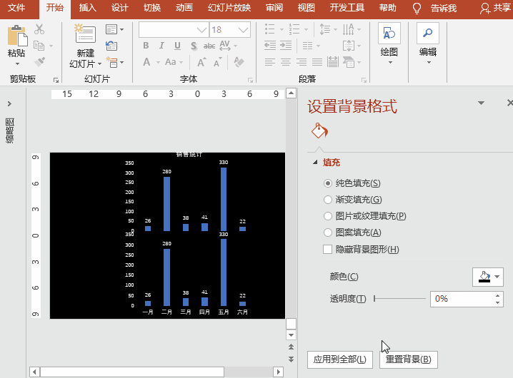为了得到更好的展示效果,打开PowerPoint软件,新建幻灯片,右键“设置背景格式”,选择“纯色填充”之黑色。