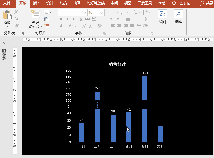 点击“插入”选项卡-“文本框”-“竖排文本框”,输入3个点的省略号,设置文本框这无边框,调整省略号大小、颜色与柱形图同色后,将其置于上下图表中间;