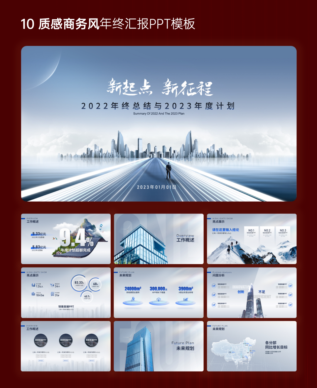 这次我们直接搞波大的!全体设计师加班加点,一口气给大家制作了10套定制级的年终汇报PPT模板。你没看错,整整10套,而且风格完全不同!文末提供下载,一起看看效果吧!