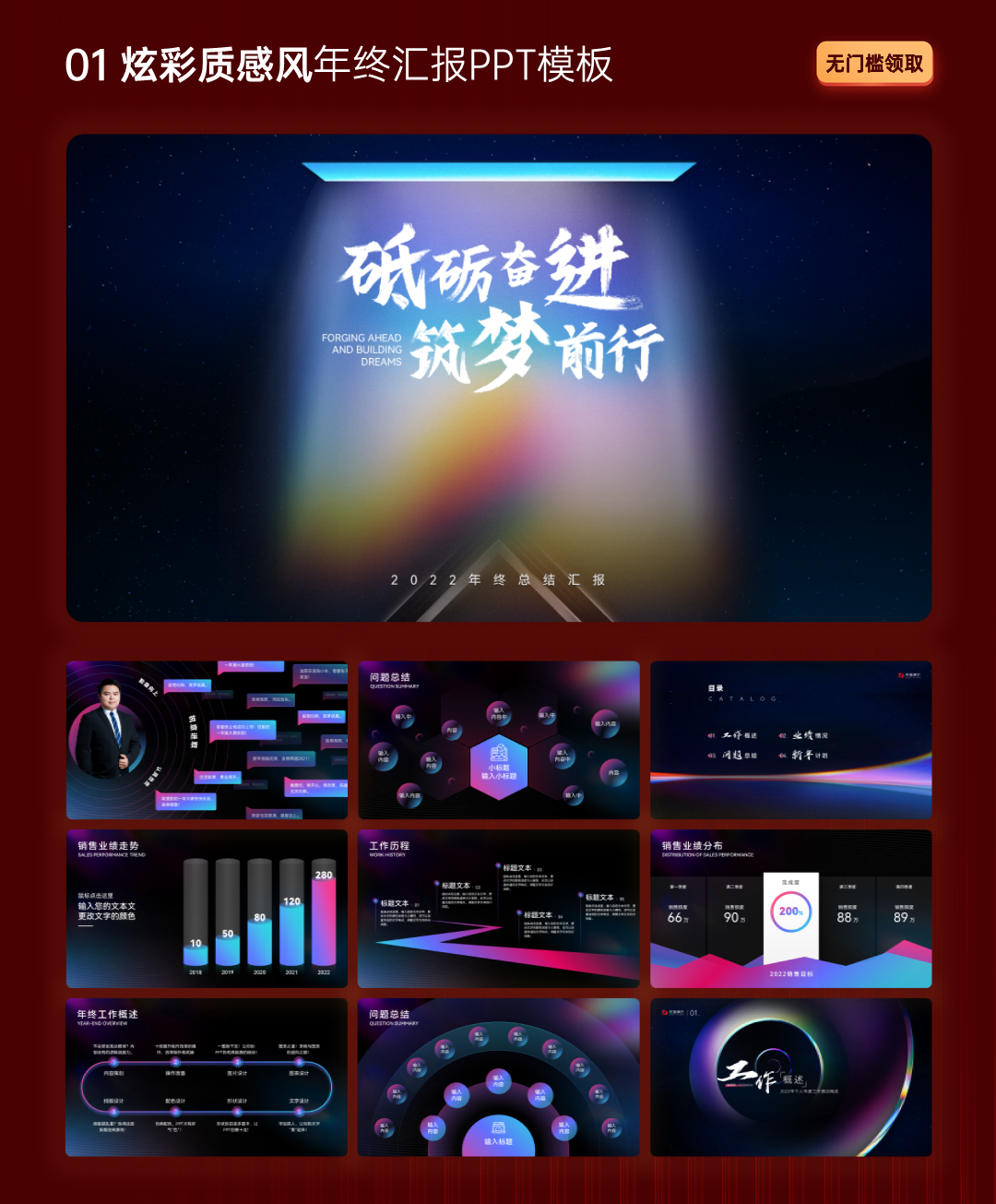 01炫彩质感风年终汇报PPT模板