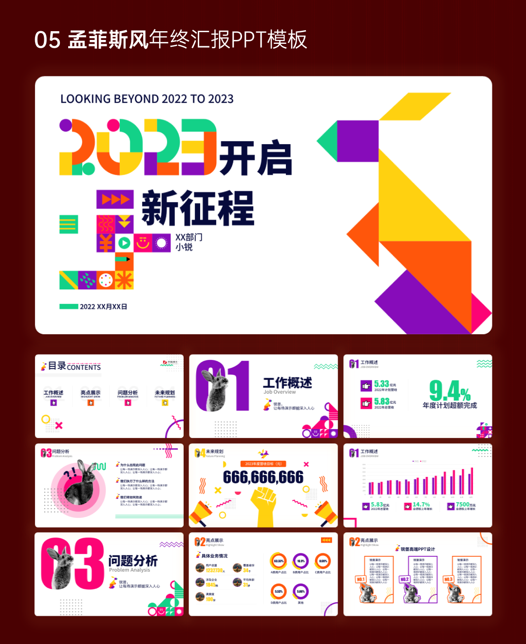 05孟菲斯风年终汇报PPT模板