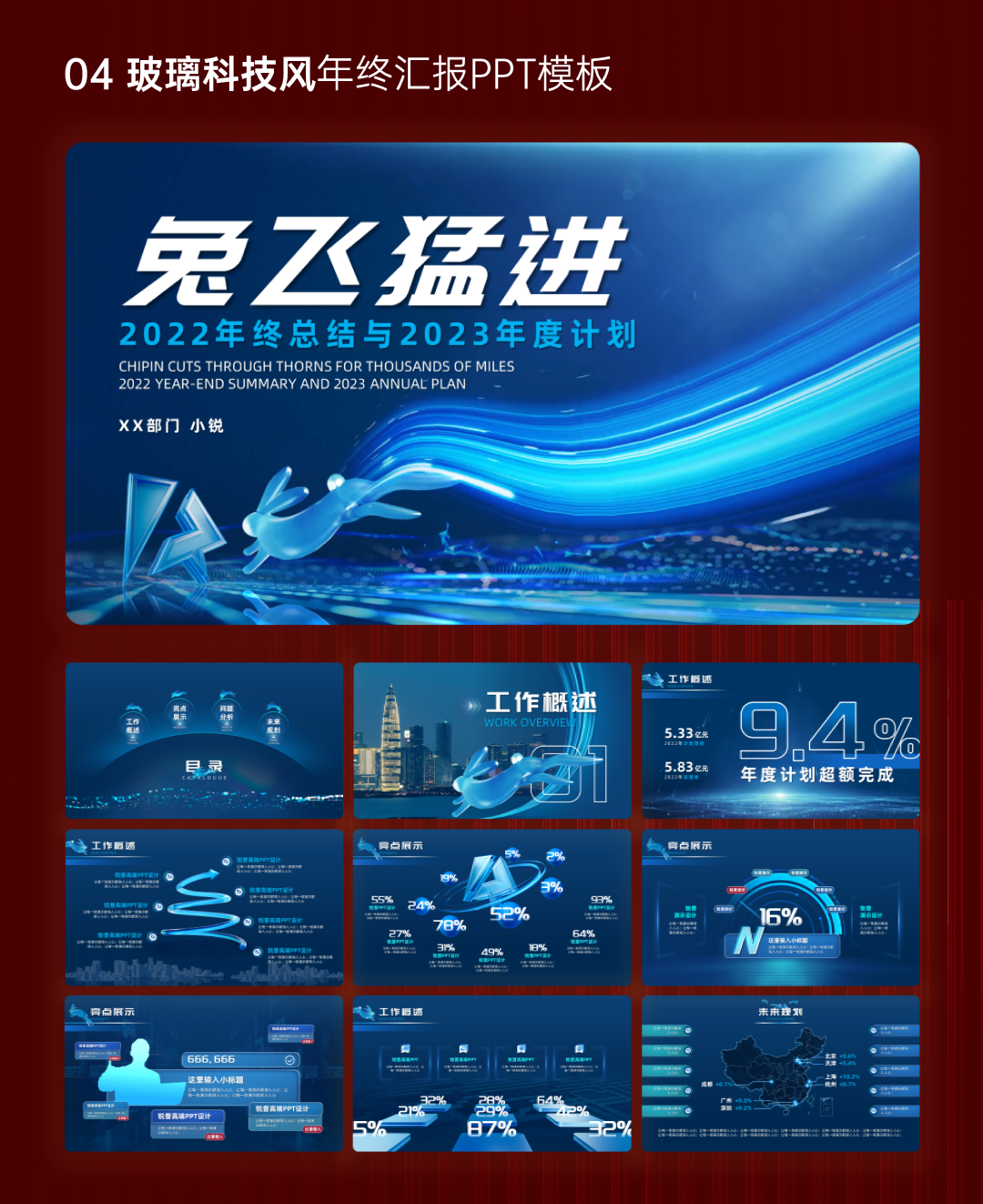 04玻璃科技风年终汇报PPT模板