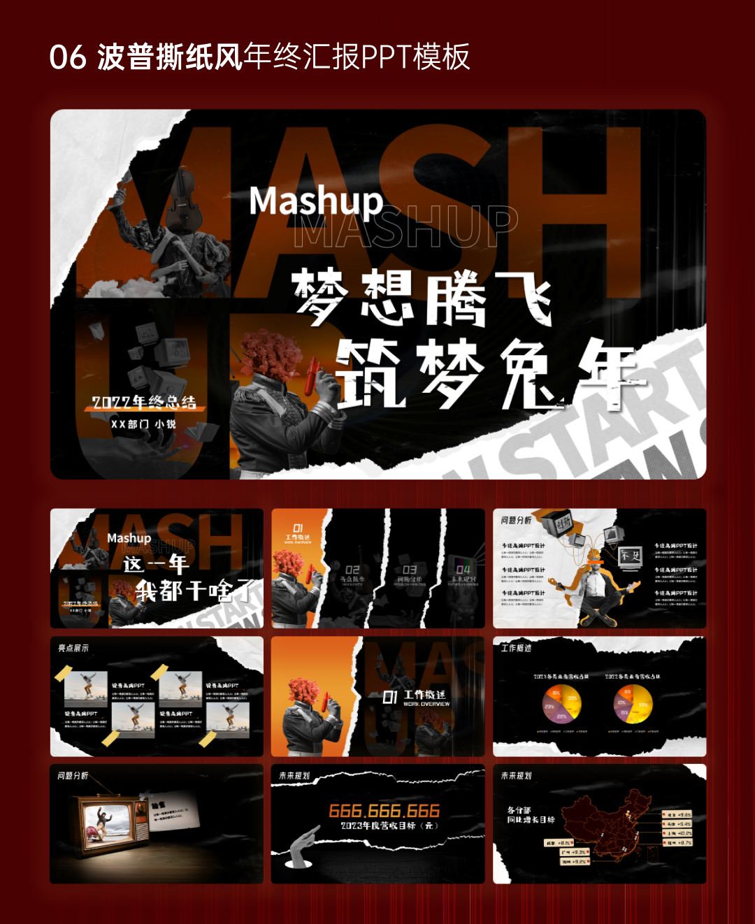 06波普撕纸风年终汇报PPT模板
