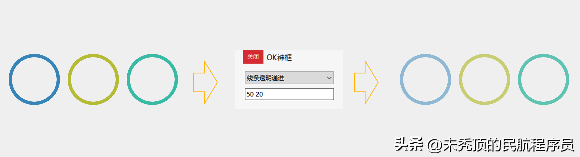 3.假设有三个形状,参数如果是0,50。表示第一个形状的透明度是0%,第二个形状的透明度是25%,第三个形状的透明度是50%