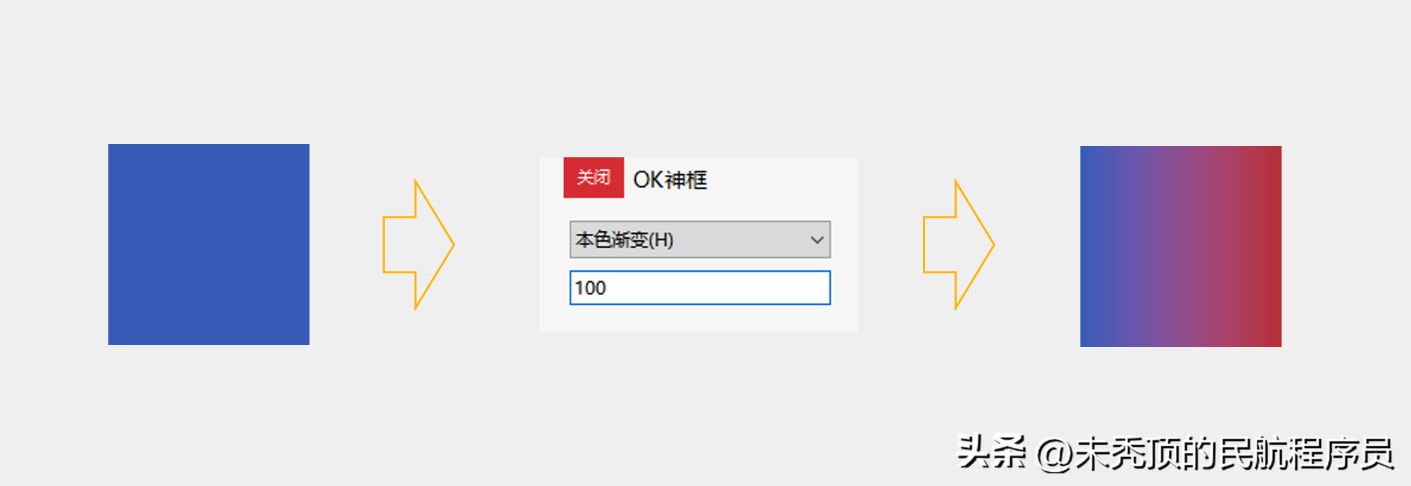 2.输入一个值,则在原来色调的基础上增加100,并且由原来的纯色填充变成了渐变填充