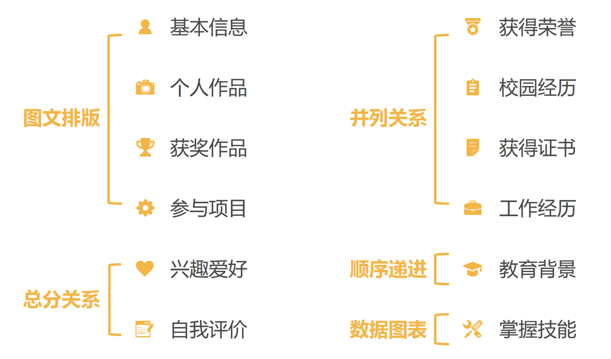 无论是什么形式的PPT,只要分好关系,剩下的就是不用脑子选择适合自己的图就行。