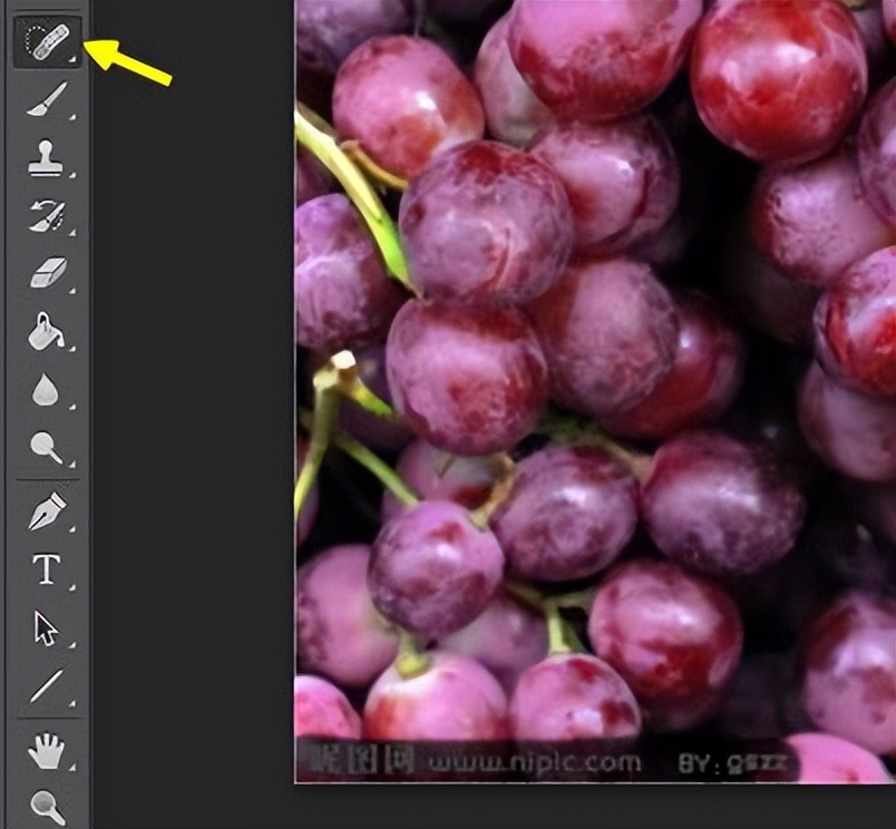 可以使用污点修复画笔工具,也是涂一涂就能把简单的水印去掉啦。