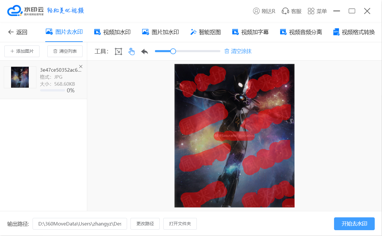 依然还是用消除笔工具涂抹要去除的水印区域: