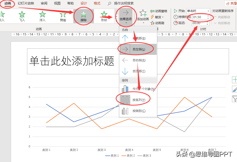 (4)其他步骤同图1,动画选择擦除、效果选按系列即可。