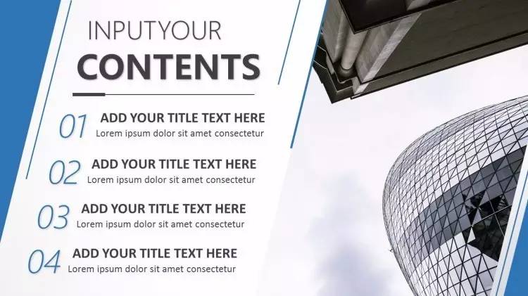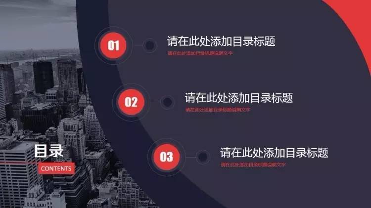 做法是:把幻灯片的版面从中间分开,左边放上「目录」,然后在右边添加各个章节的小标题,在小标题前可以用一些符号,比如圆形,正方形,甚至图片,加以修饰,不至显得太单调