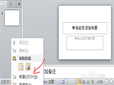 5.单击鼠标的右键,然后再点击“新建幻灯片”。
