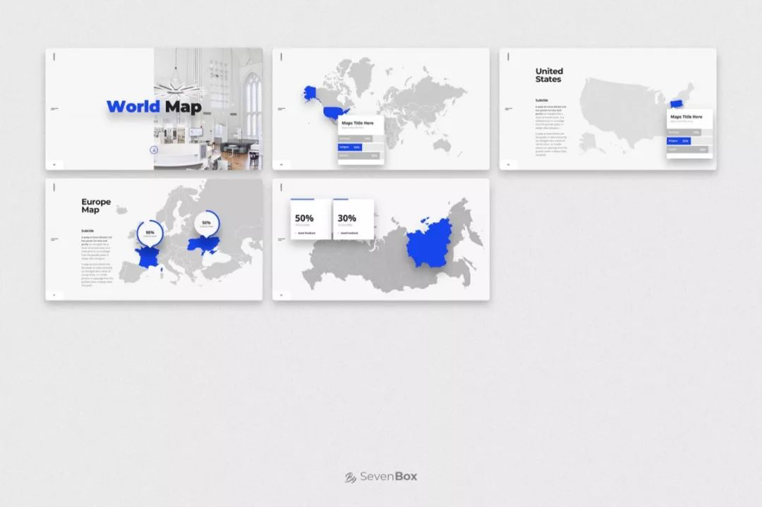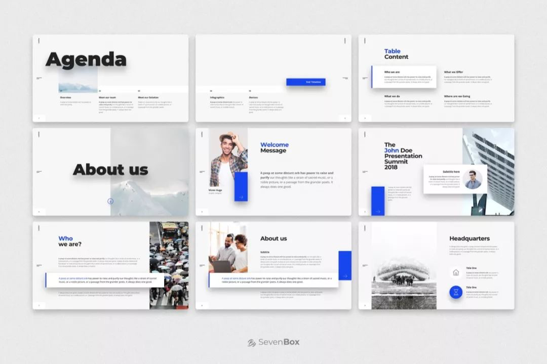 这套模板可满足绝大部分场景使用,包含文本、会议议程、作品集、个人简介、样机设备、地图、图标、数据展示、价格表等板块。