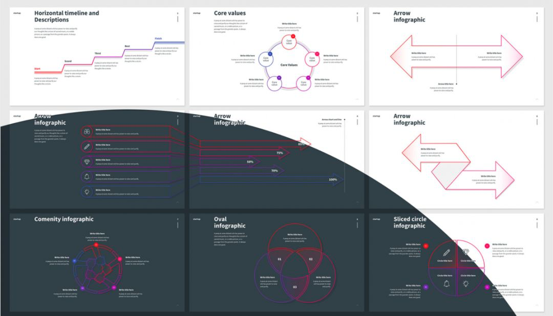 小白最后在behance、追波等优秀设计网站上,找到了一批非常好看、免版权、可商用等ppt模板,已经直接打包好了和大家分享,下载地址放在文末,自取即可。