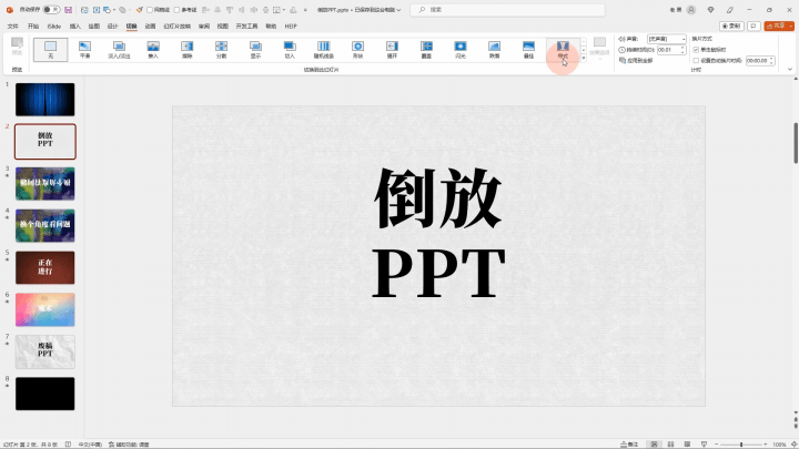 当你给一页PPT增加切换动画后,