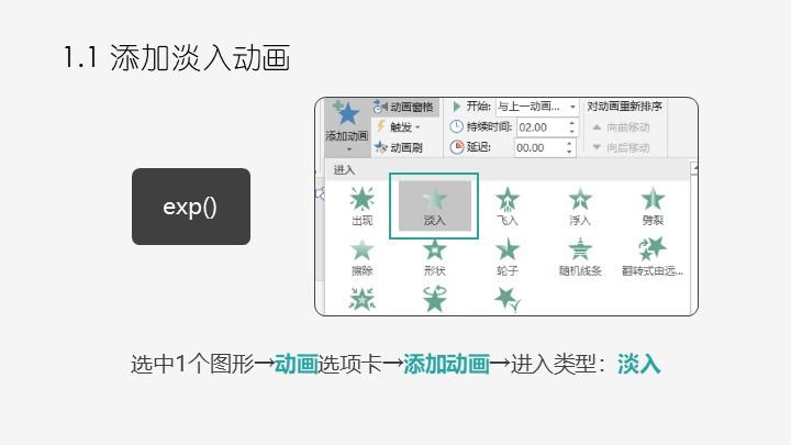 1.1 为了方便,我们可以先给图形添加1个淡入的进入动画