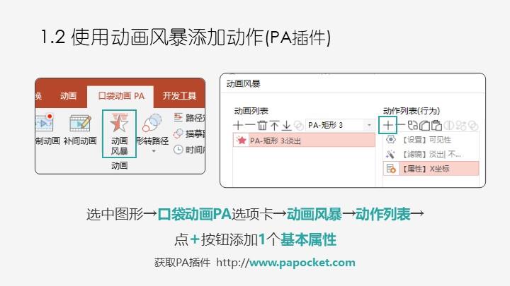 1.2 使用PA插件的动画风暴功能添加1个基本属性动作。PA插件的获取方法请看上图底部文字