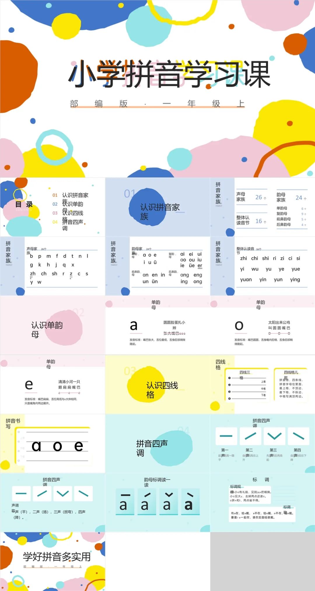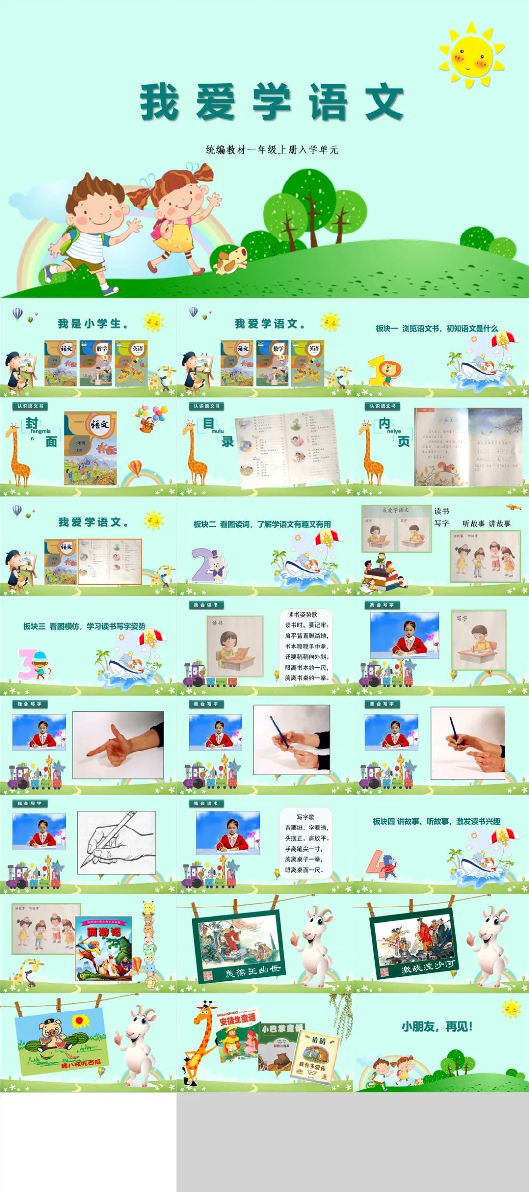 这套PPT模板特别适用小学语文课课件适用,配色分成清洗。