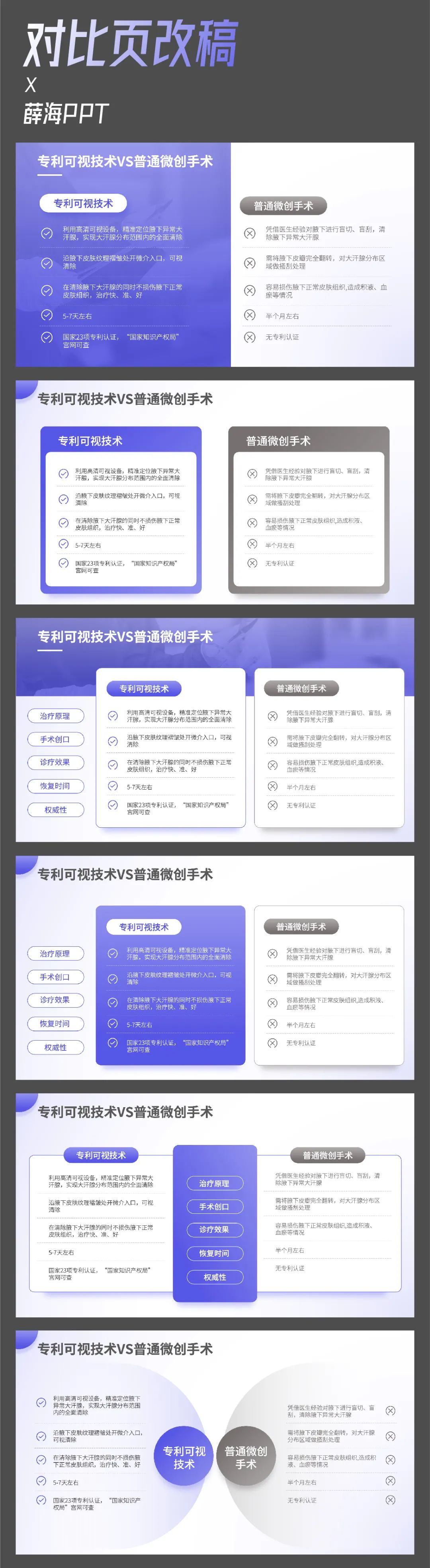 还可以将对比内容做成卡片式排版,同样用有颜色和无颜色进行对比展示: