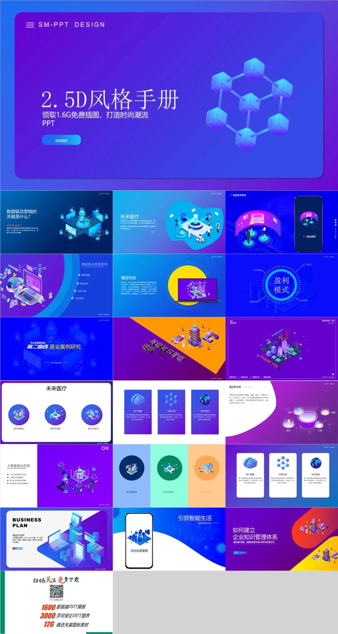 这些模板的风格也非常现代,包括2.5D,扁平风格,几何风格等。