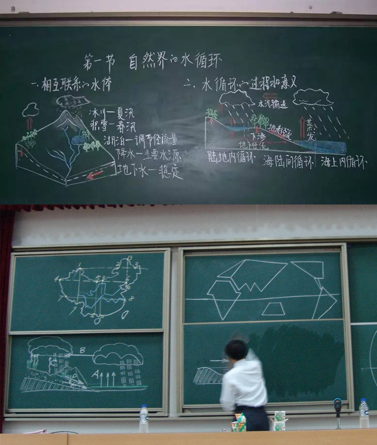 在绘制一个个地理教学图时魅力十足,搭配上图形,整个板书浑然天成。无论是板块示意图还是水循环示意图,在地理老师的手中比书本的配图还要赏心悦目。