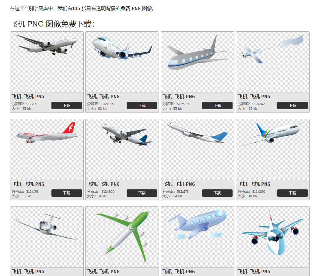 比如我们点开“飞机”分类中的素材,就会出现各种样式的飞机素材: