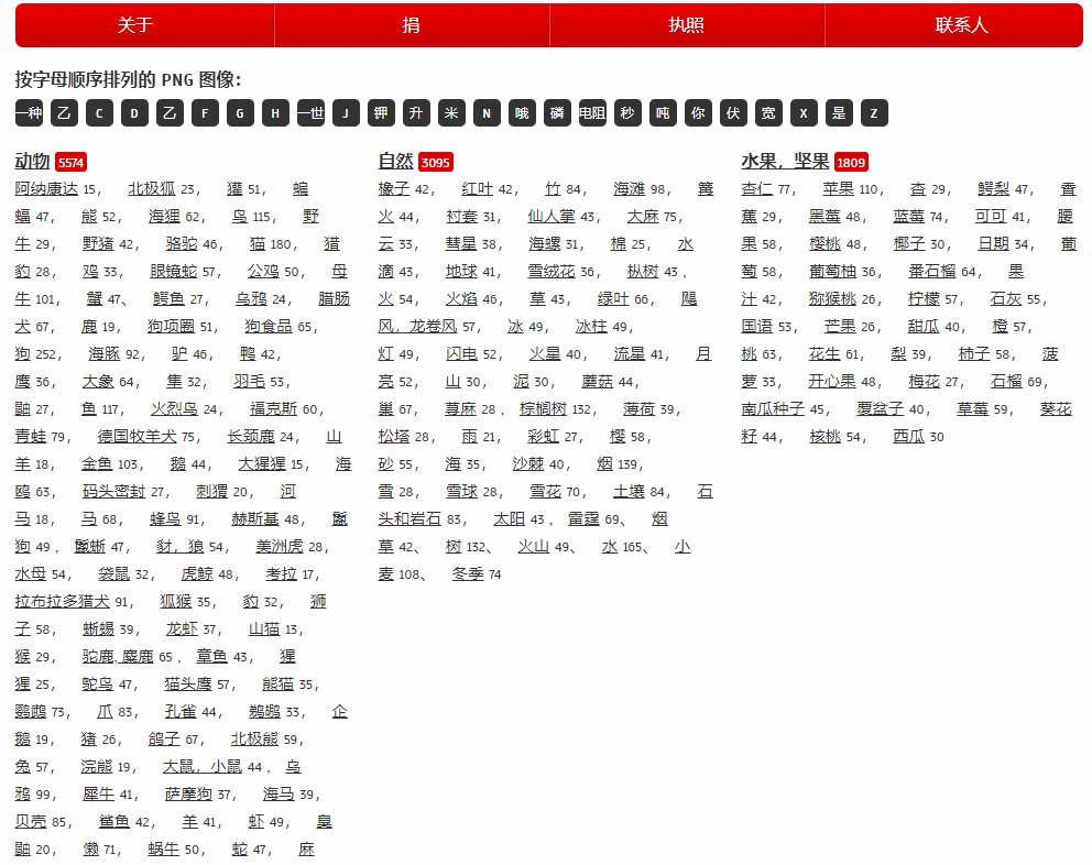 这是一个免费的,且素材全质量高的PNG网站,网站包含10万多个图片素材,还有非常细致的分类: