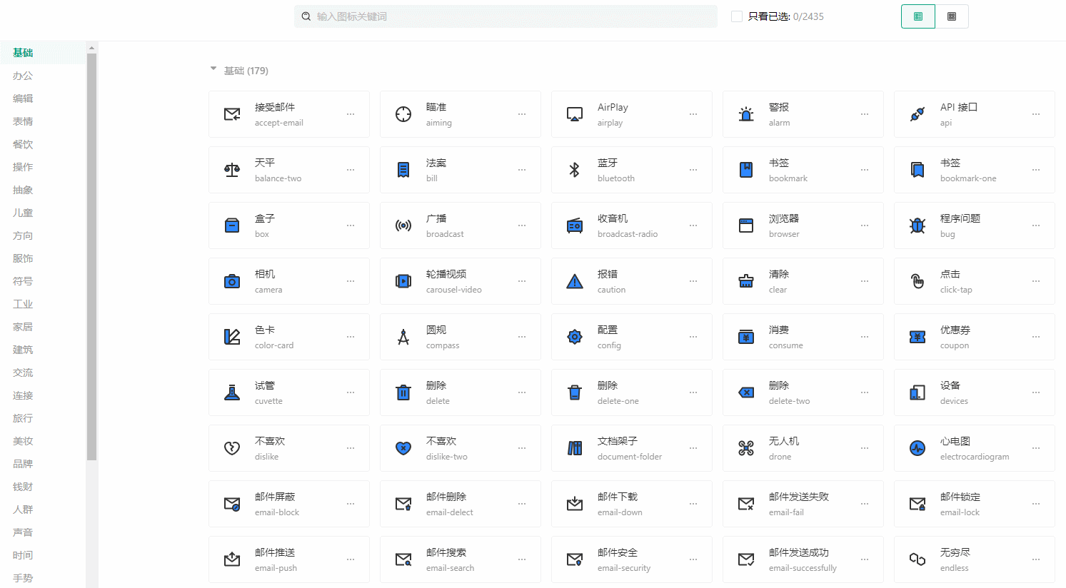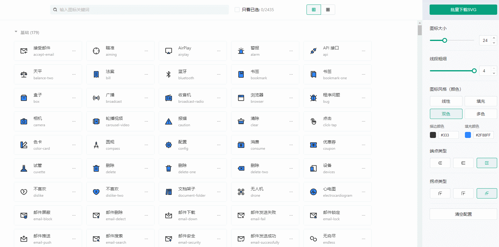 这是由字节跳动出品的一个图标网站,目前已有2400+矢量图标: