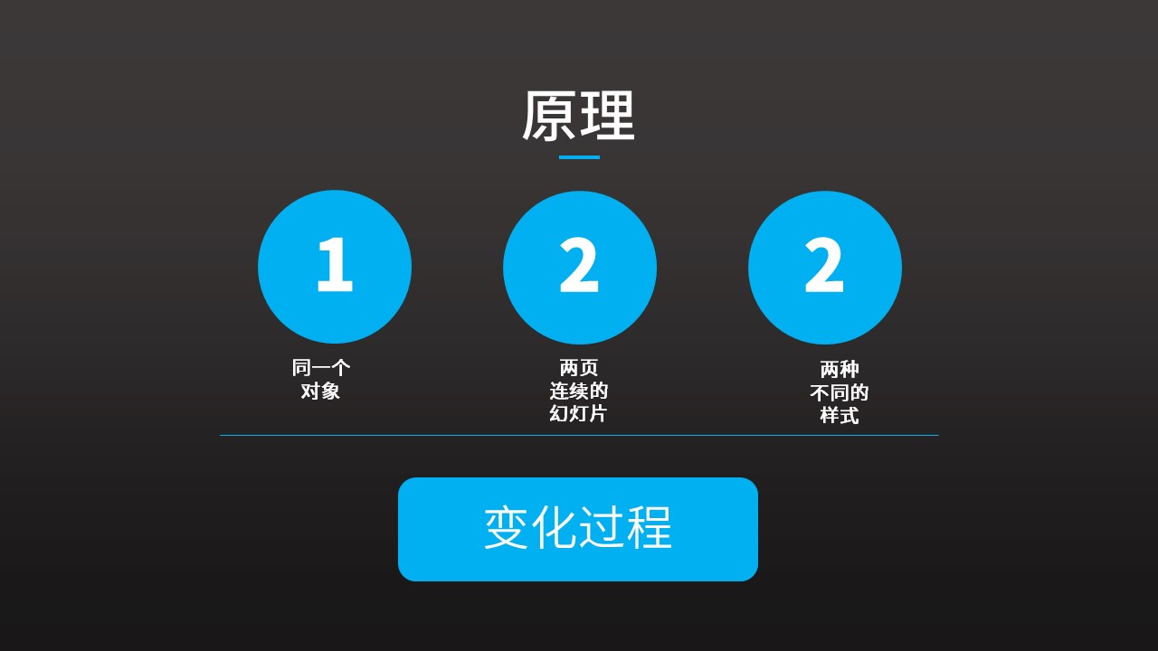 ——同一个对象,在两页连续的幻灯片之间,两种不同样式的一个变化过程。
