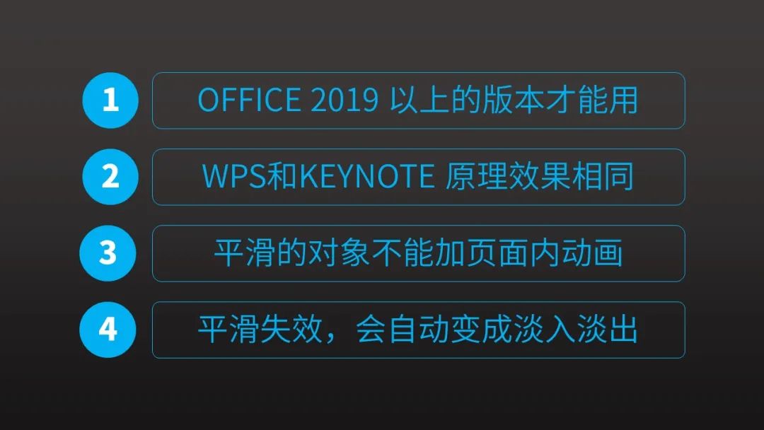 平滑是PPT里面的一种切换动画,展示的是两个页面之间的过渡动画