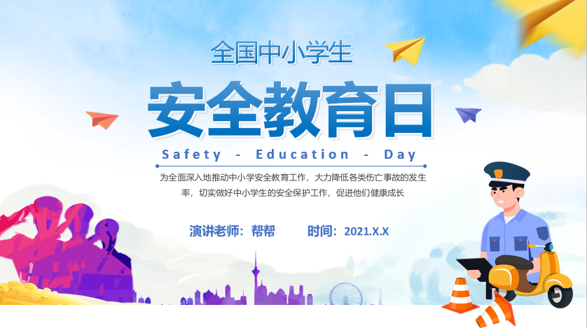 Hello大家好,我是帮帮。今天跟大家分享一张全国中小学生安全教育日PPT,完整内容主题班会,组织学习拿来就用。
